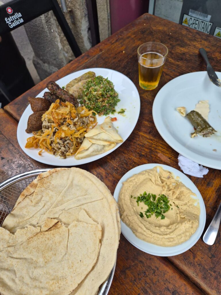 Lugar bem aconchegante e agradável. Paramos em um restaurante para aquela cervejinha bemmm gelada e uma comidinha deliciosa, um mix árabe super recomendado por R$99. Mesa ao ar livre, guarda-sóis coloridos, conversa alta, gente circulando. Uma diversidade também gastronômica, reflexo da própria formação cultural da cidade.