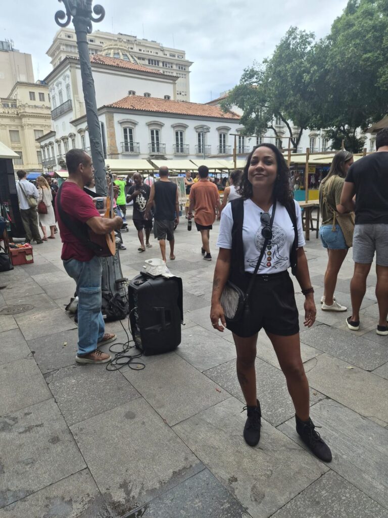 Talvez o Rio de Janeiro seja exatamente isso: essa mistura. A tão conhecida miscigenação. Muitos turistas estrangeiros em meio ao nosso povo carioca, gente trabalhadora, que aos finais de semana, tenta ao menos se divertir, como se cada encontro, cada samba, cada cerveja fosse um pequeno alívio para curar dores ancestrais.
