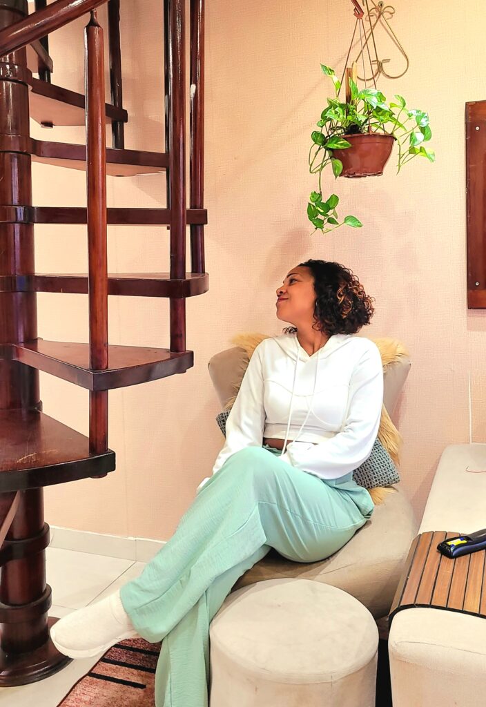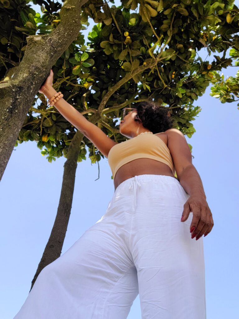Foi nesse processo de redescoberta que encontrei meu estilo natural. Passei a perceber que a forma como me visto está intimamente ligada àquilo que cultivo fora e dentro de mim. Prefiro linhas fluidas, tecidos leves, peças que respeitam o movimento do corpo e cores que conversam com a natureza.