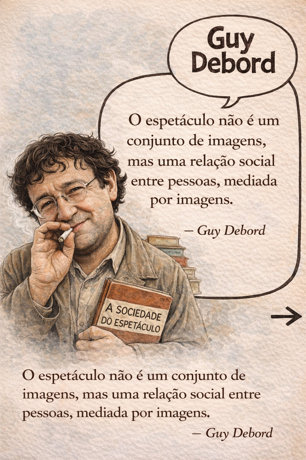 Perceba que é exatamente aí que entra uma das frases mais conhecidas de Debord: