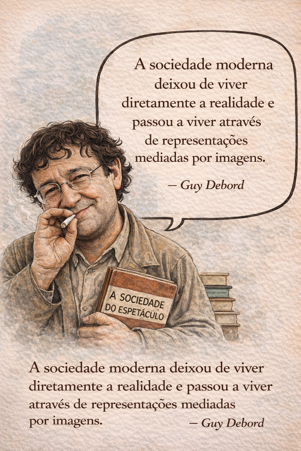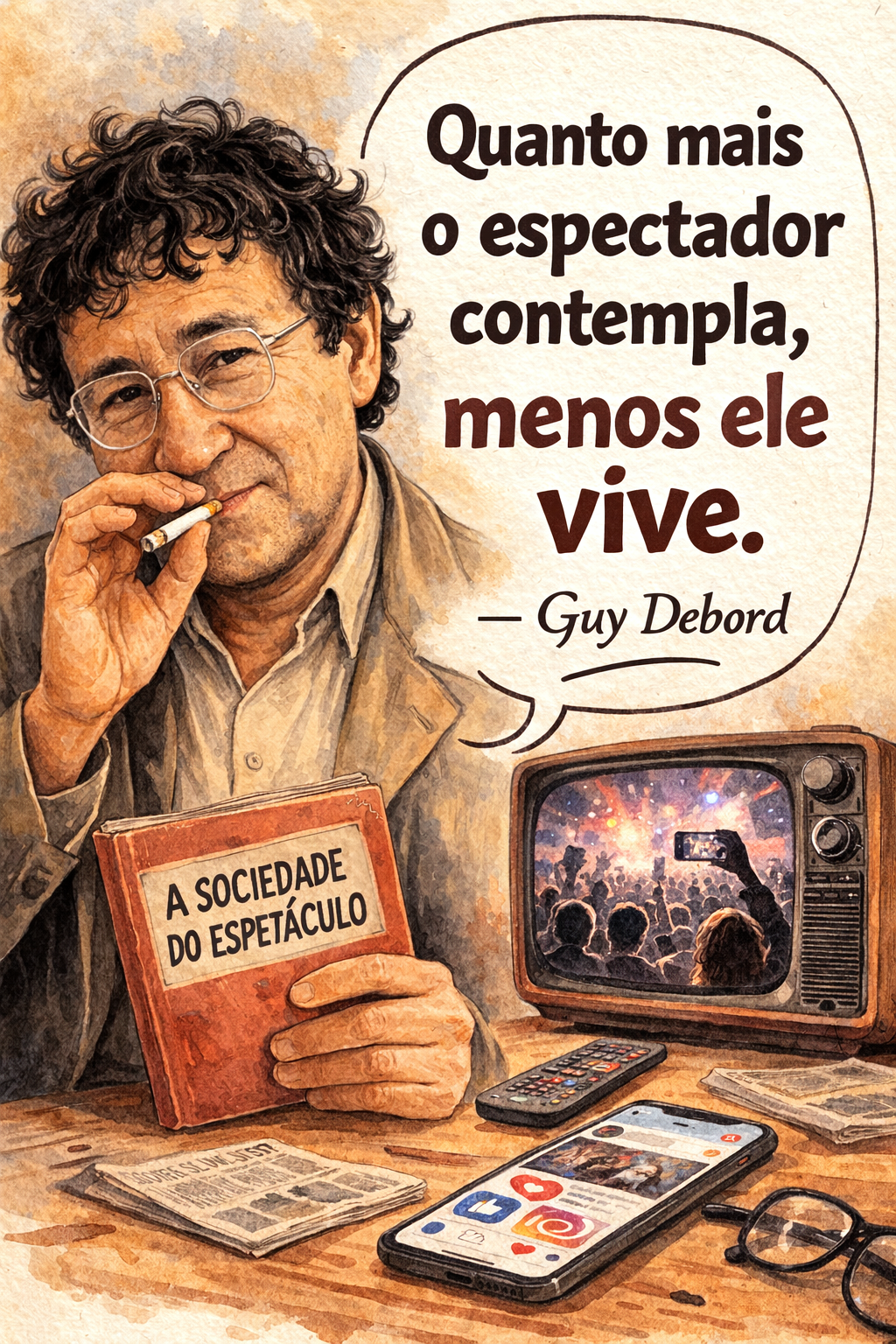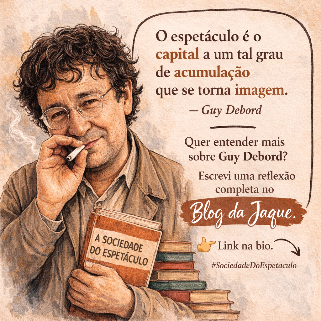 Mas o que Debord nos convida a perceber é algo mais estrutural, não é apenas aquilo que vemos. É um sistema que organiza desejos, expectativas e modelos de sucesso.