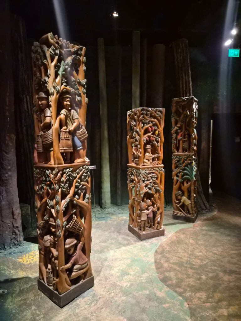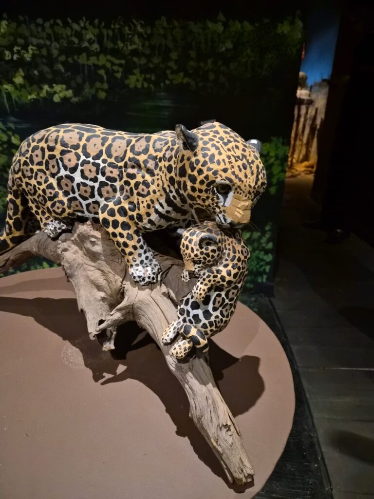 O cenário da exposição também impressiona. Todo o espaço, foi transformado em paisagens inspiradas nos biomas brasileiros, com cenografia produzida por artistas que trabalham nas grandes escolas de samba do Rio de Janeiro.